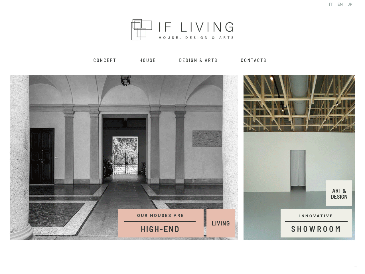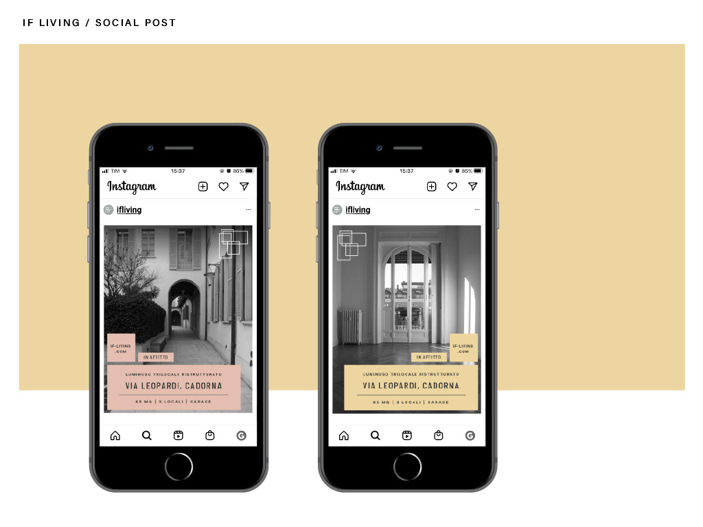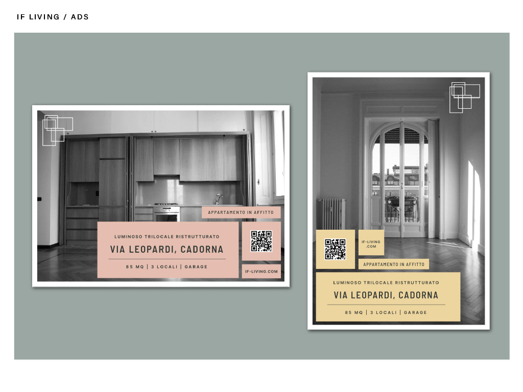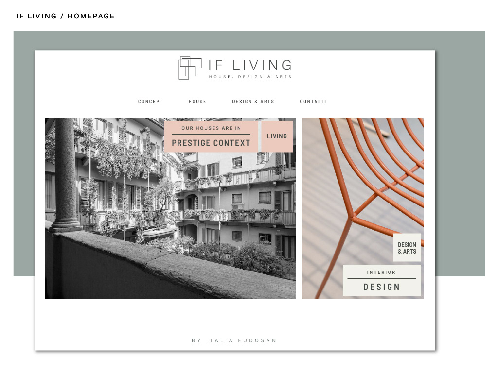 Milan based luxury real estate agency hosting a collateral showroom for designers and artists exhibitions. IF Living aims to be a new real estate experience melted with the design and art worlds. The logo, at the core of this concept, represents the rooms, spaces and, at the same time, the "IF" letters.